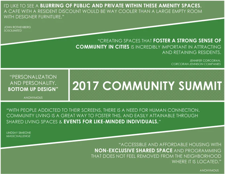 On May 31st and June 7th professionals across various fields in community development, engagement, and design came together for a discussion on public spaces. The significance of the summits was to discuss current strengths and weaknesses in the urban fabric of Boston and develop solutions to create an optimized social living experience for the city’s residents. In each summit, attendees discussed historical and current trends and how they idealize the future of social spaces. They participated in an activity called “Meet the Neighbors”, where participants placed themselves in the shoes of various characters, such as a high strung single mom, a recent graduate, or a shy adolescent. The goal was to generate ideas about objects, locations, and technology that can facilitate interaction even amongst the most conflicting of personality types and economic backgrounds. This ideal future was then further developed by breaking off into small groups and designing prototypes that would help bring the city to this ideal future. We will be showcasing these prototypes at ABX and HUBweek, so be sure to check it out!